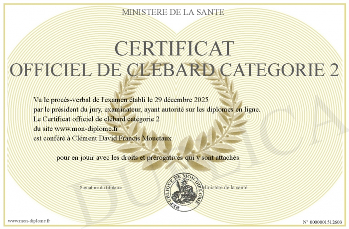 Envoyez par email votre Certificat officiel de clébard catégorie 2 personalisé