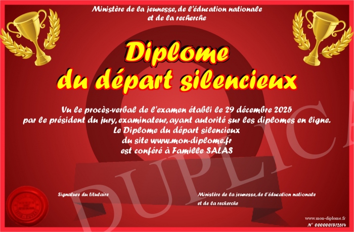 Envoyez par email votre Diplôme du départ silencieux personalisé