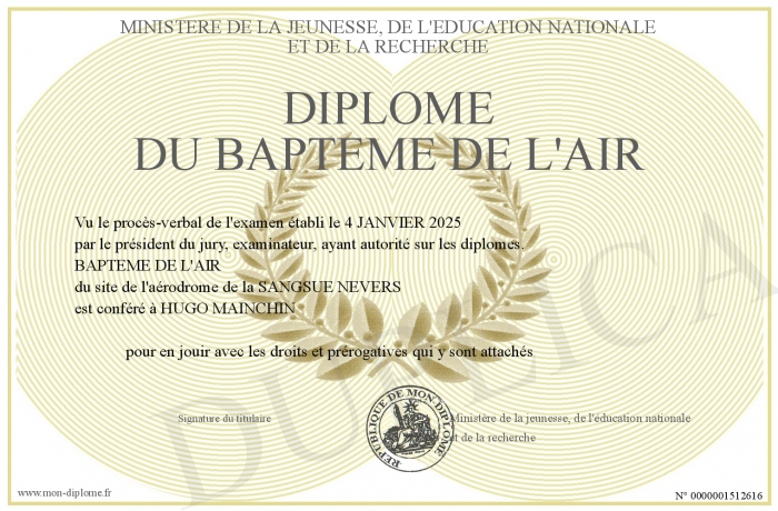 Envoyez par email votre Diplôme du BAPTEME DE L'AIR personalisé