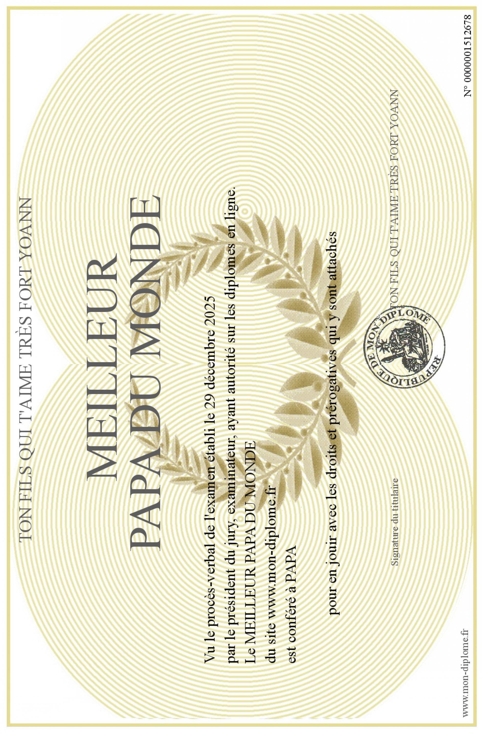 Envoyez par email votre MEILLEUR PAPA DU MONDE personalisé