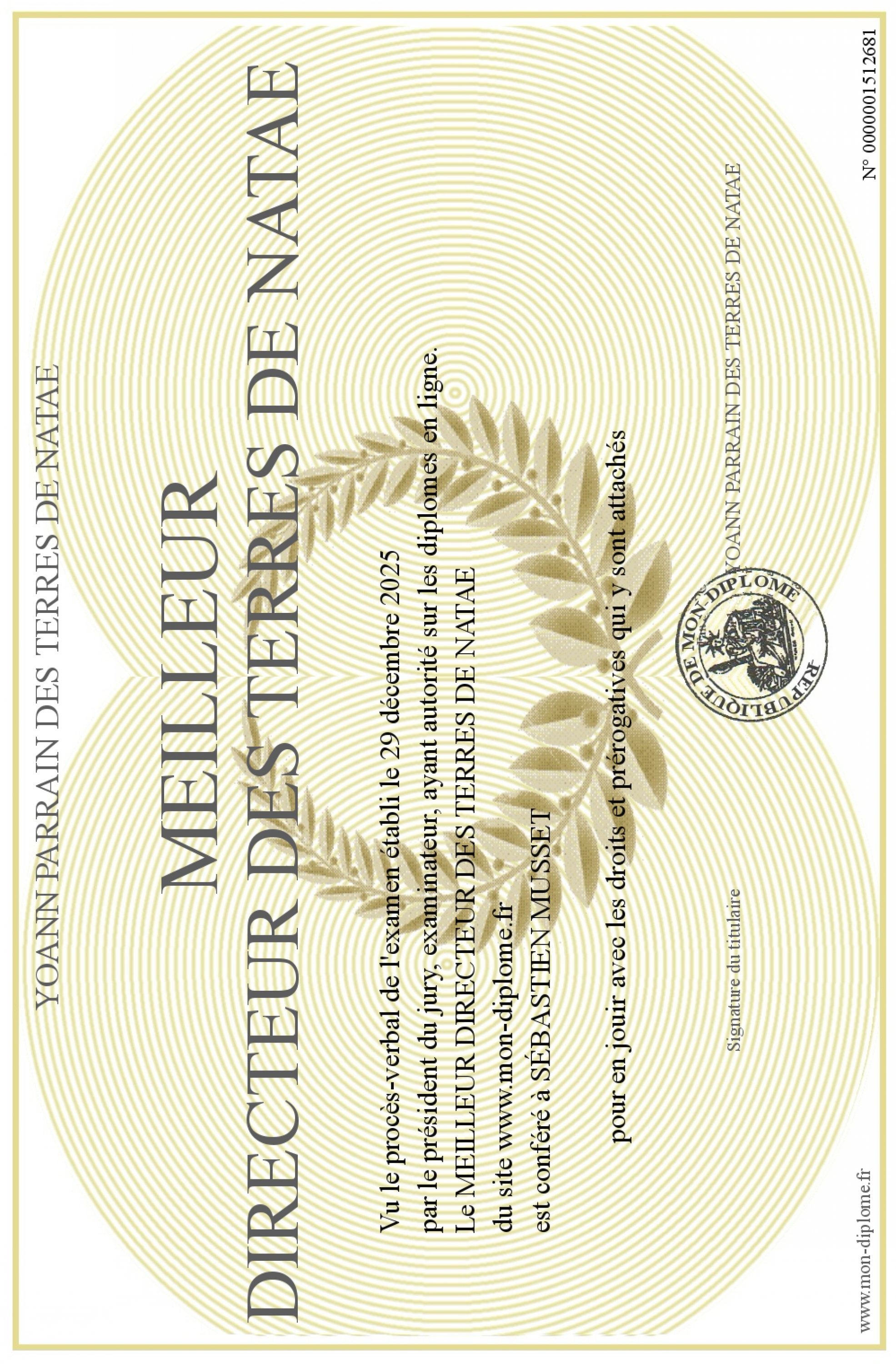Envoyez par email votre MEILLEUR DIRECTEUR DES TERRES DE NATAE personalisé