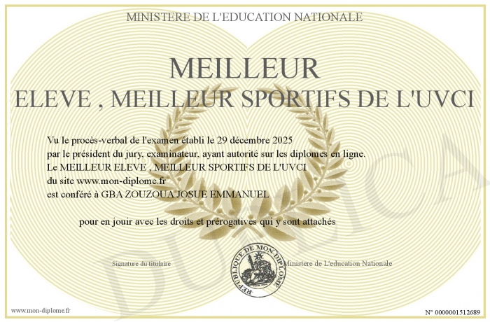 Envoyez par email votre MEILLEUR ELEVE , MEILLEUR SPORTIFS DE L'UVCI personalisé