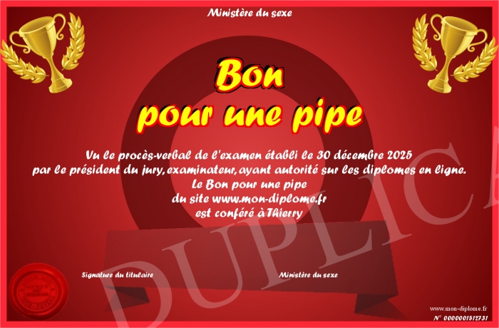 Envoyez par email votre Bon pour une pipe personalisé