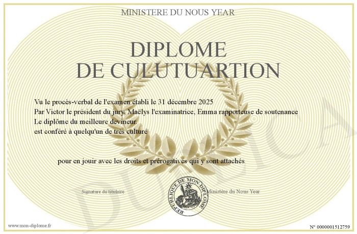 Envoyez par email votre Diplôme de Culutuartion personalisé