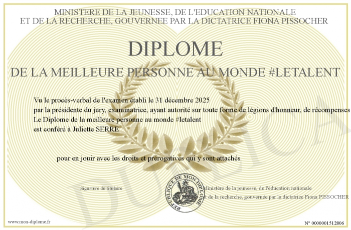 Envoyez par email votre Diplôme de la meilleure personne au monde #letalent personalisé