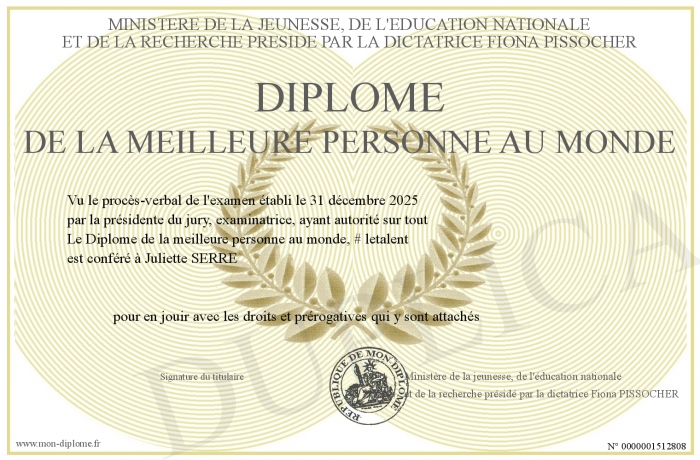 Envoyez par email votre Diplôme de la meilleure personne au monde personalisé