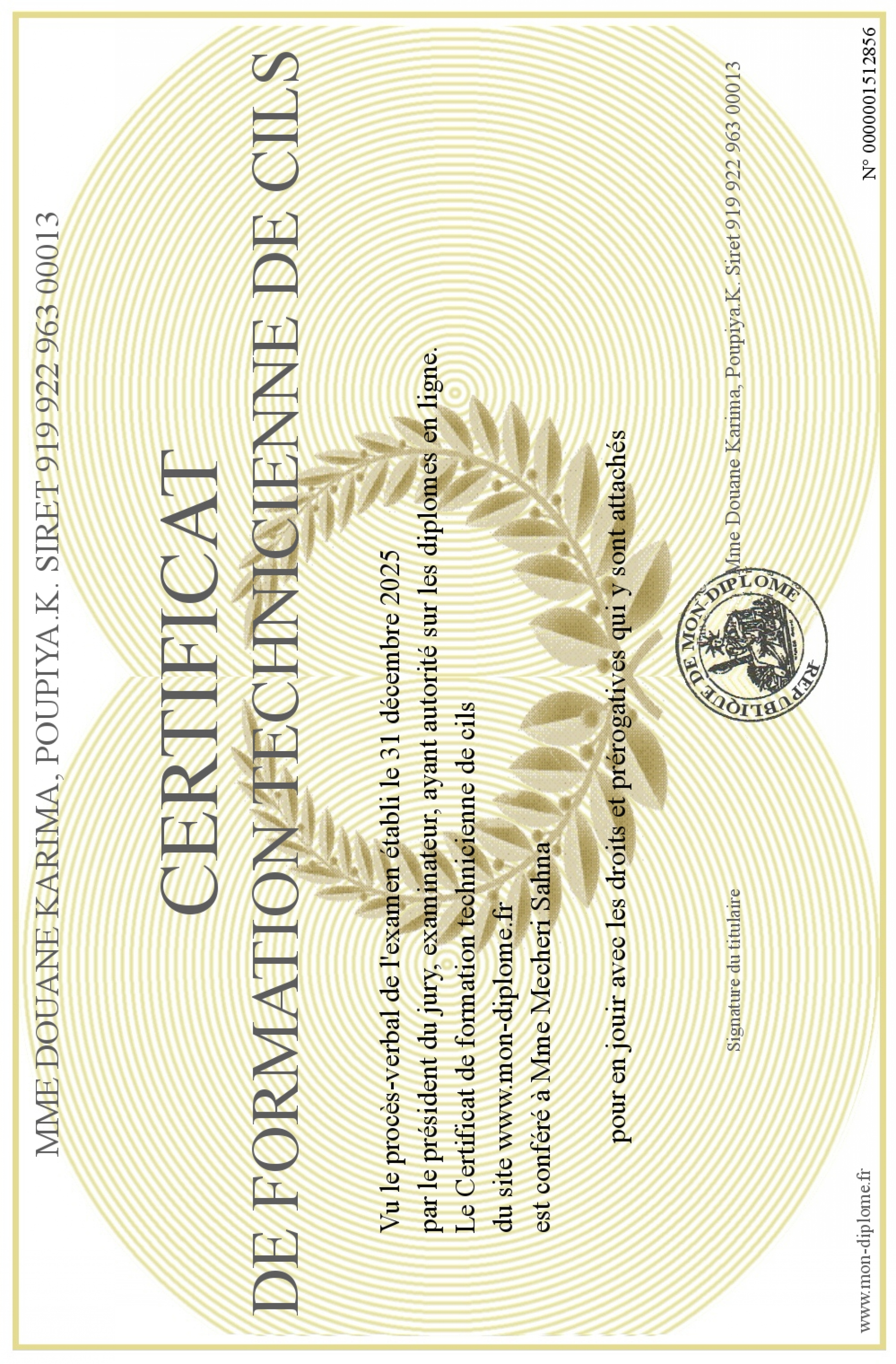 envoyé par le Mme Douane Karima, Poupiya.K. Siret 919 922 963 00013 !