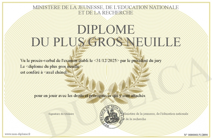 Envoyez par email votre Diplôme du plus gros neuille personalisé