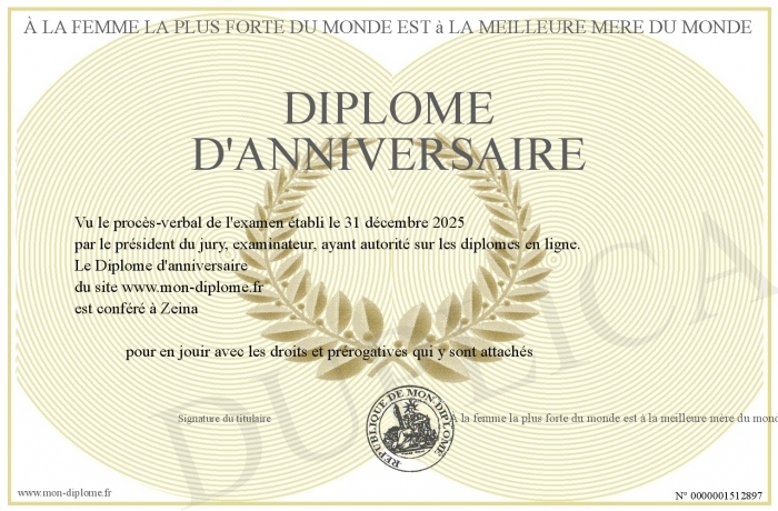 Envoyez par email votre Diplôme d'anniversaire personalisé