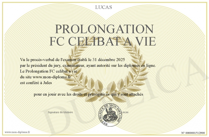 Envoyez par email votre Prolongation FC celibat a vie personalisé