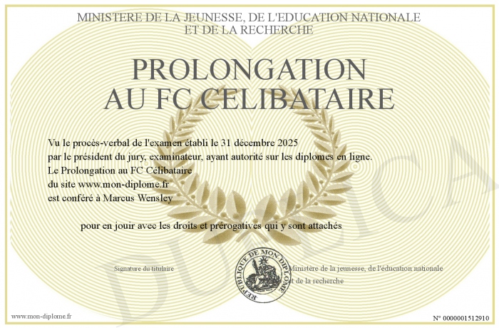 Envoyez par email votre Prolongation au FC Célibataire personalisé