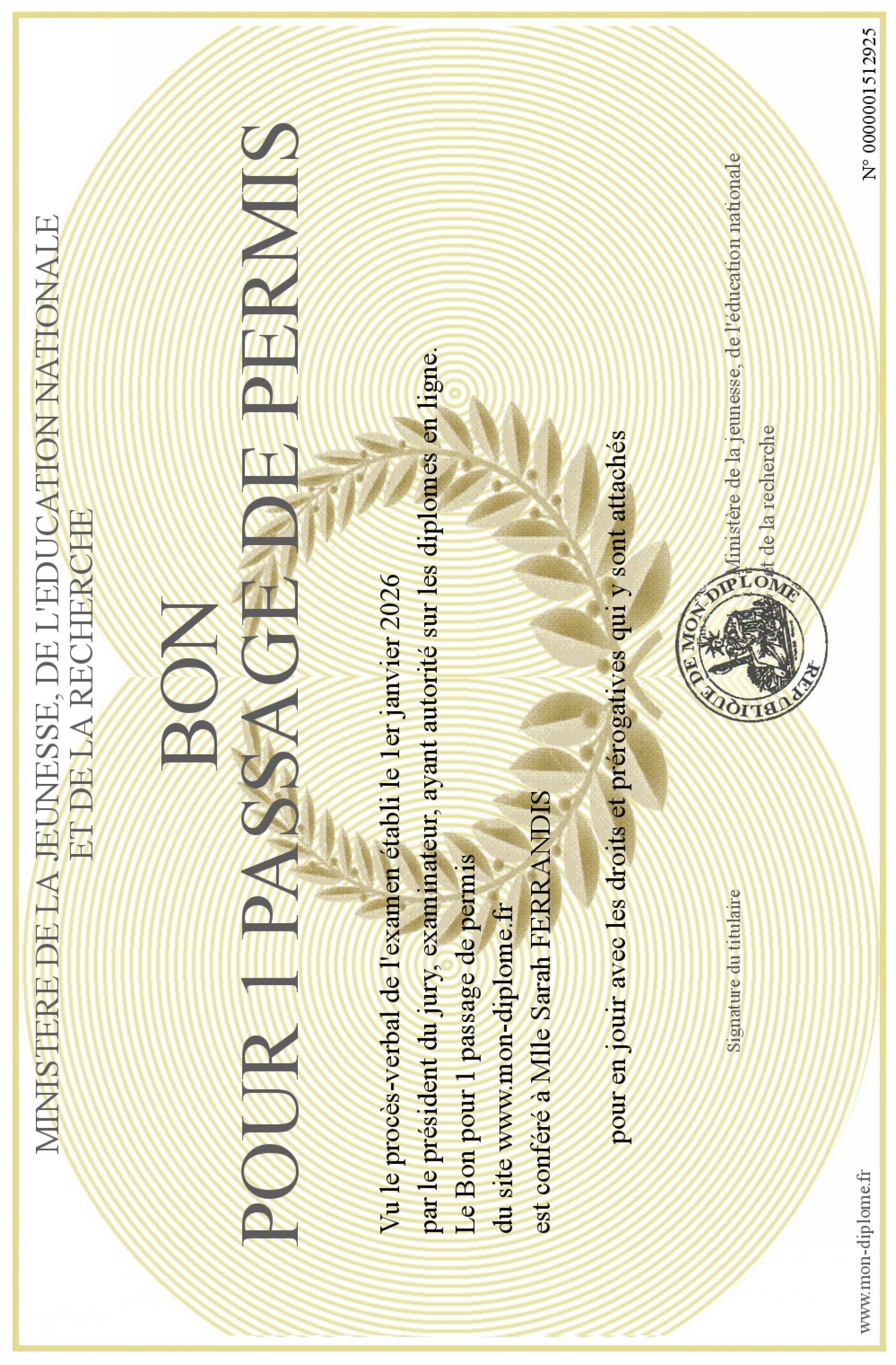 Envoyez par email votre Bon pour 1 passage de permis personalisé