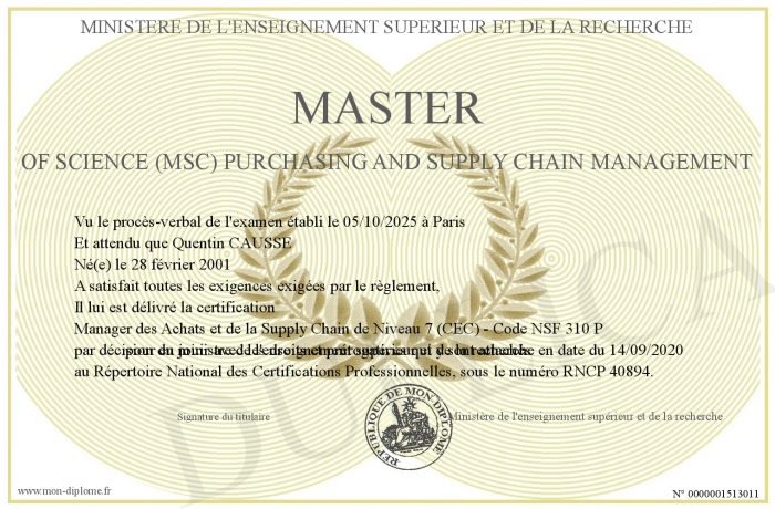 Envoyez par email votre Master of Science (MSc) Purchasing and Supply Chain Management personalisé