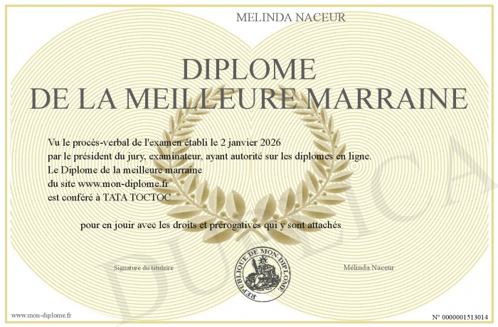 Envoyez par email votre Diplôme de la meilleure marraine personalisé