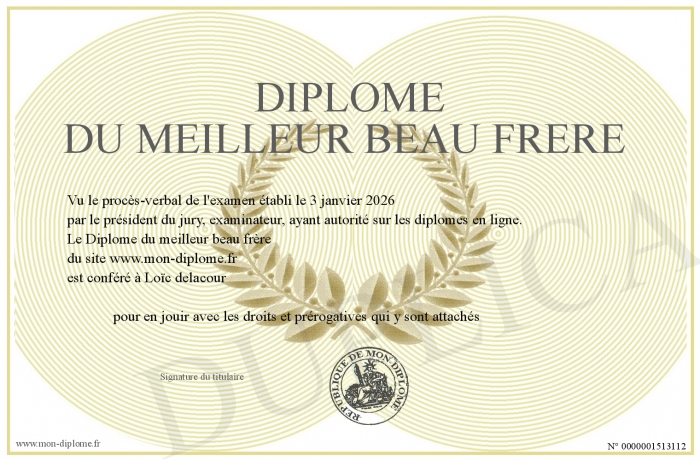 Envoyez par email votre Diplôme du meilleur beau frère personalisé