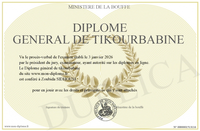Envoyez par email votre Diplôme général de tikourbabine personalisé