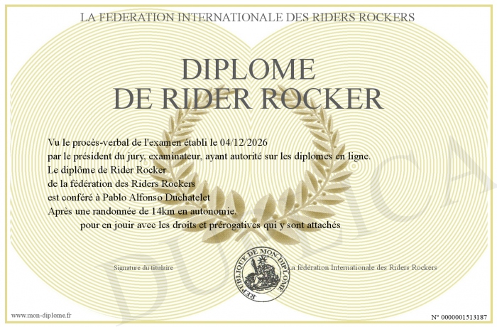 Envoyez par email votre Diplôme de rider rocker personalisé