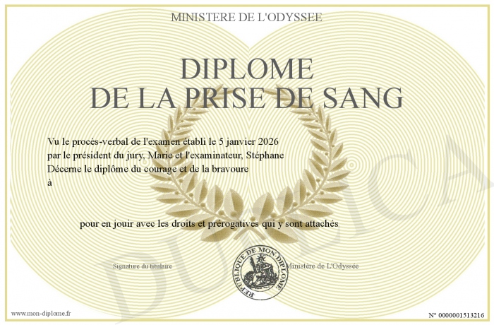 Envoyez par email votre Diplôme de la prise de sang personalisé