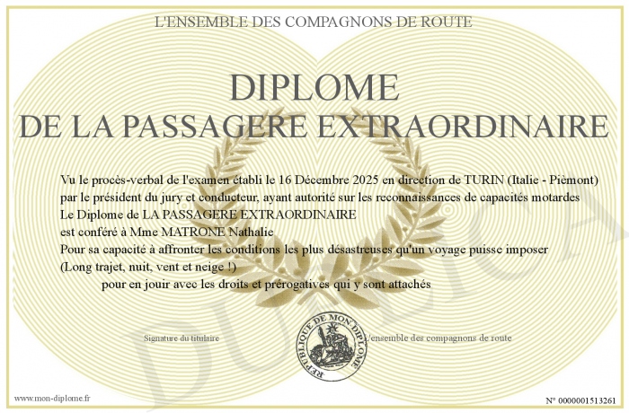 Envoyez par email votre Diplôme de LA PASSAGERE EXTRAORDINAIRE personalisé