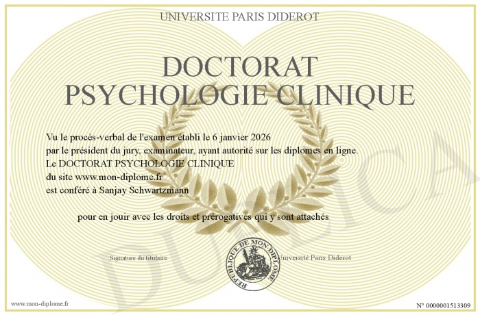 Envoyez par email votre DOCTORAT PSYCHOLOGIE CLINIQUE personalisé