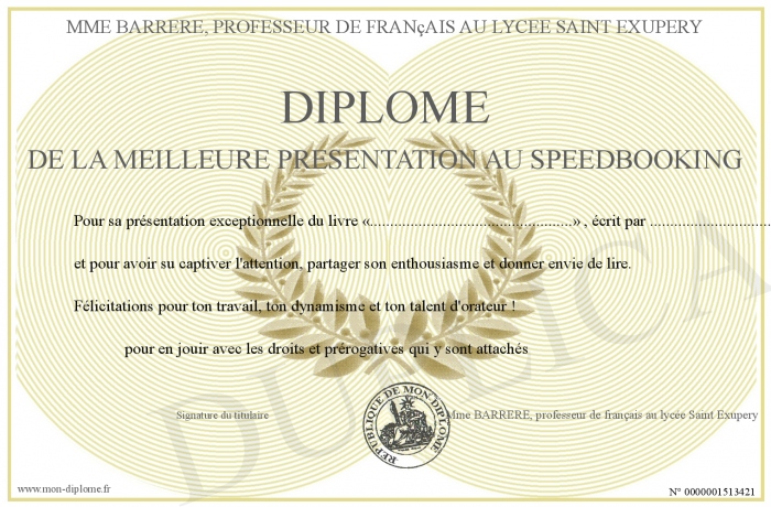 Envoyez par email votre Diplôme de la meilleure présentation au Speedbooking personalisé