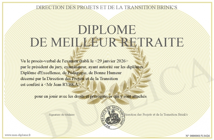 Envoyez par email votre Diplôme de meilleur retraité personalisé