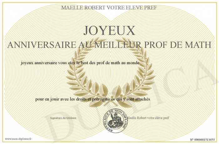Envoyez par email votre joyeux anniversaire au meilleur prof de math personalisé