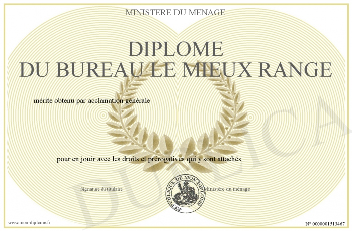 Envoyez par email votre Diplôme du bureau le mieux rangé personalisé