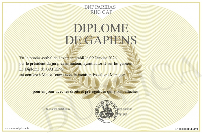 Envoyez par email votre Diplôme de GAPIENS personalisé