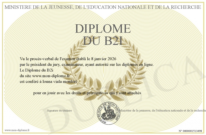 Envoyez par email votre Diplôme du B2i personalisé