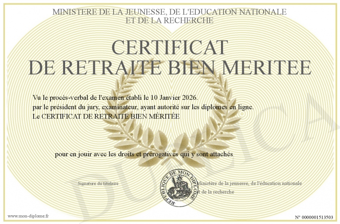 Envoyez par email votre Certificat de Retraite bien Méritée personalisé