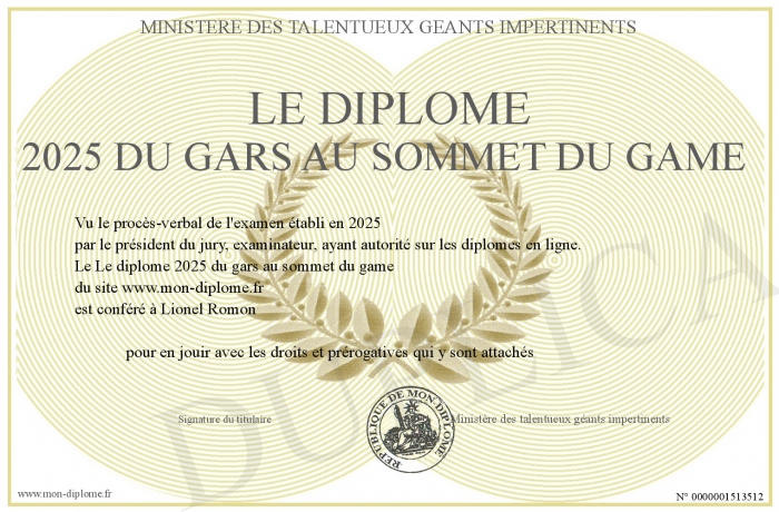 Envoyez par email votre Le diplôme 2025 du gars au sommet du game personalisé
