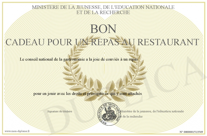 Envoyez par email votre Bon cadeau pour un repas au restaurant personalisé