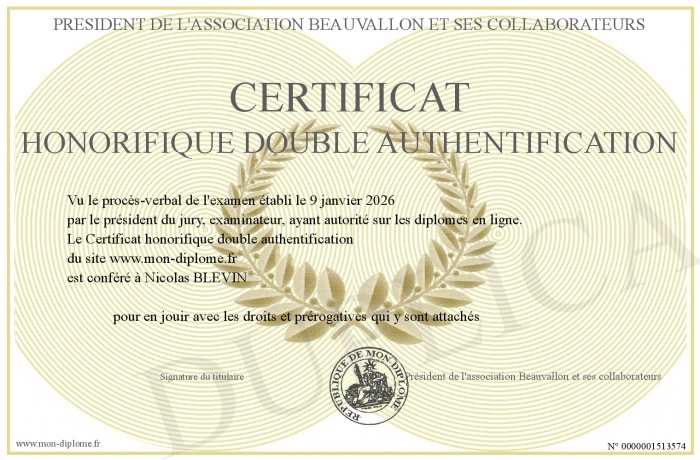 Envoyez par email votre Certificat honorifique double authentification personalisé