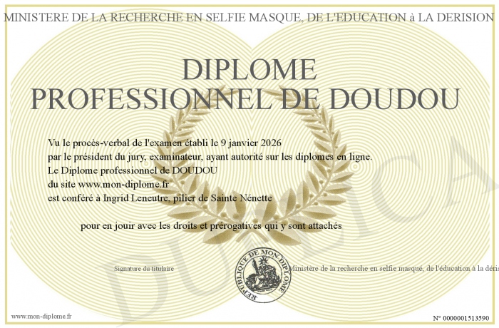 Envoyez par email votre Diplôme professionnel de DOUDOU personalisé