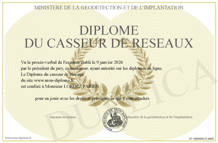 Envoyez par email votre Diplôme du casseur de réseaux personalisé