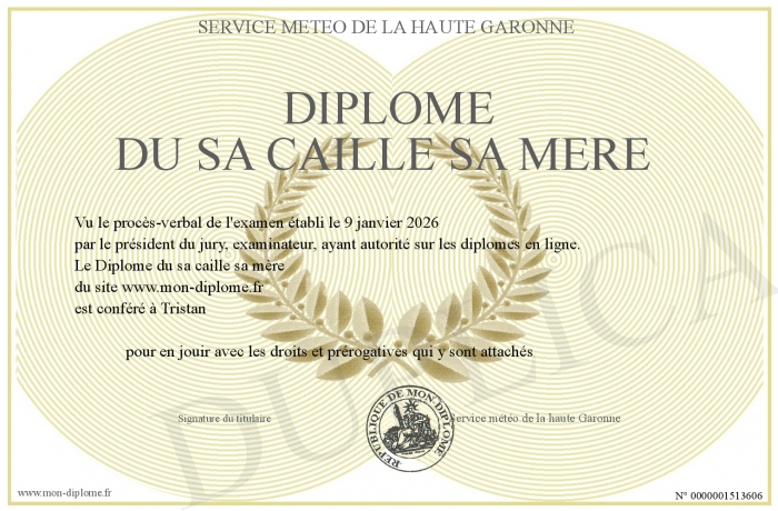 Envoyez par email votre Diplôme du sa caille sa mère personalisé