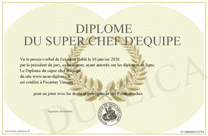 Envoyez par email votre Diplôme du super chef d'équipe personalisé
