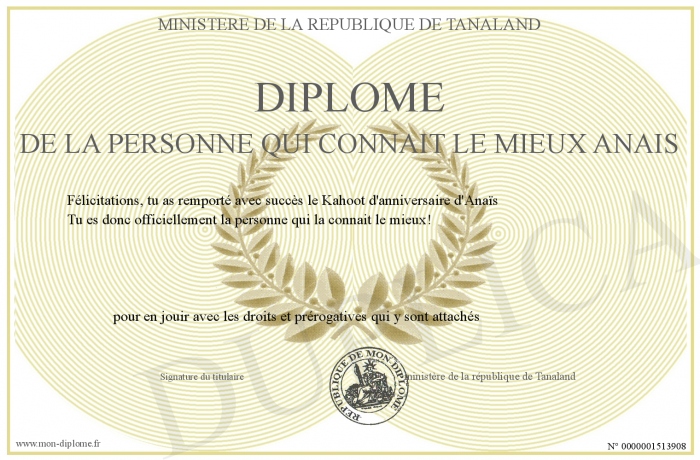 Envoyez par email votre Diplôme de la personne qui connait le mieux Anais personalisé