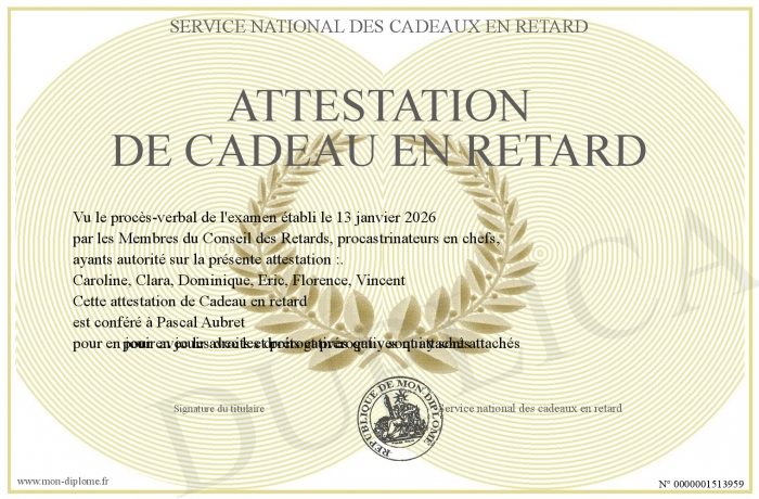 Envoyez par email votre Attestation de cadeau en retard personalisé