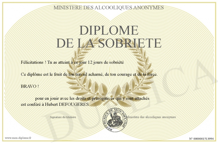 Envoyez par email votre Diplôme de la sobriété personalisé