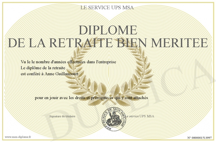 Envoyez par email votre Diplôme de la retraite bien méritée personalisé