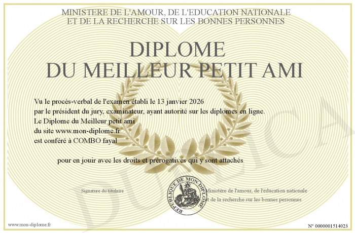 Envoyez par email votre Diplôme du Meilleur petit ami personalisé