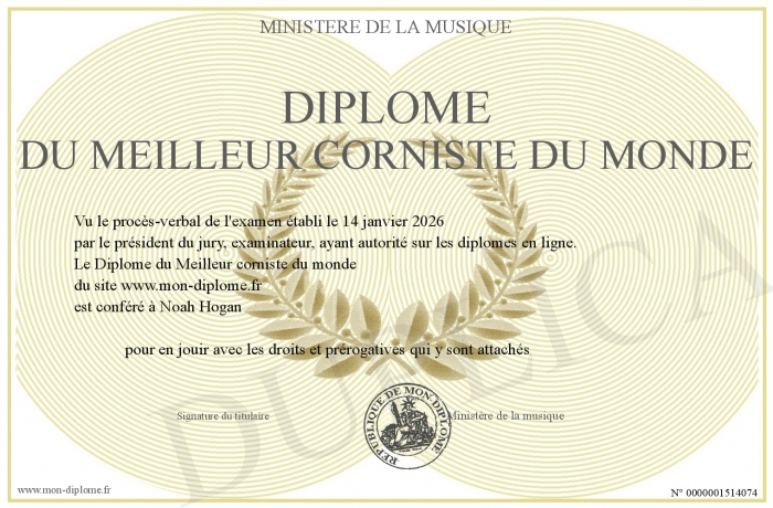 Envoyez par email votre Diplôme du Meilleur corniste du monde personalisé
