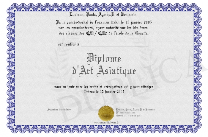 Envoyez par email votre Diplôme d'Art Asiatique personalisé