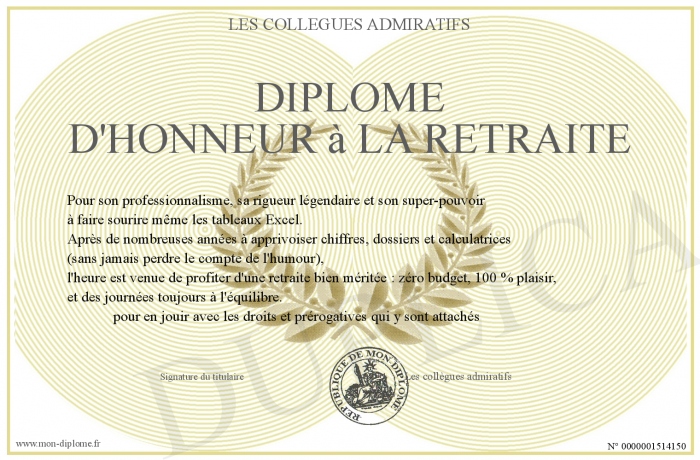 Envoyez par email votre Diplôme d'honneur à la retraite personalisé