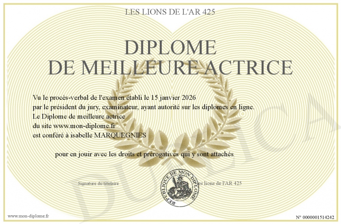 Envoyez par email votre Diplôme de meilleure actrice personalisé