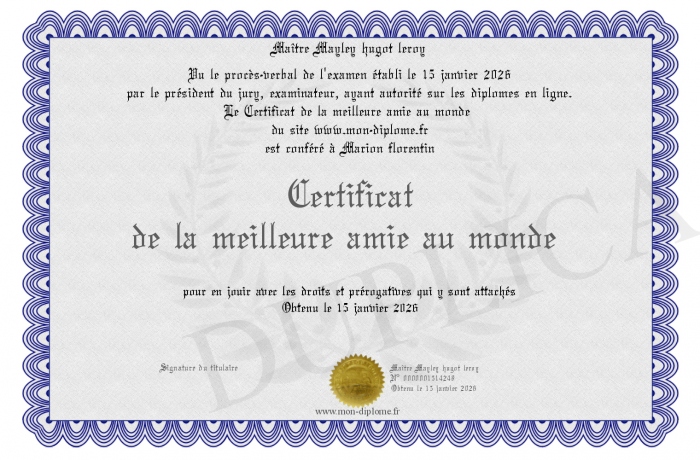 Envoyez par email votre Certificat de la meilleure amie au monde personalisé