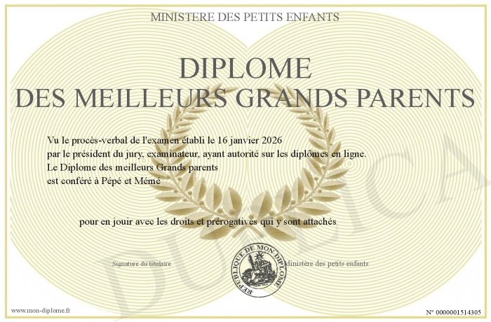 Envoyez par email votre Diplôme des meilleurs Grands parents personalisé