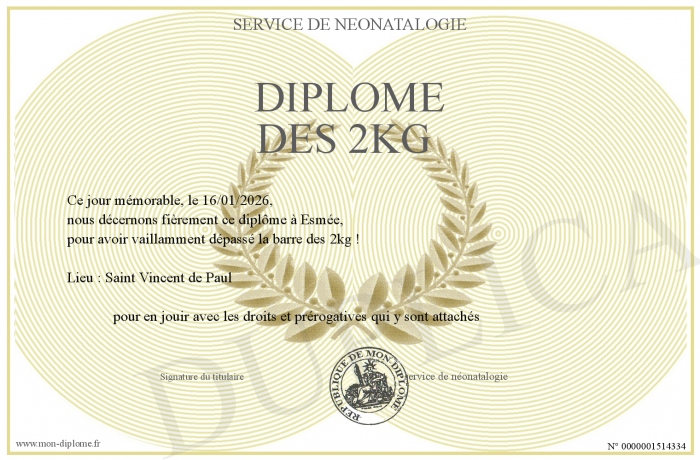 Envoyez par email votre Diplôme des 2kg personalisé